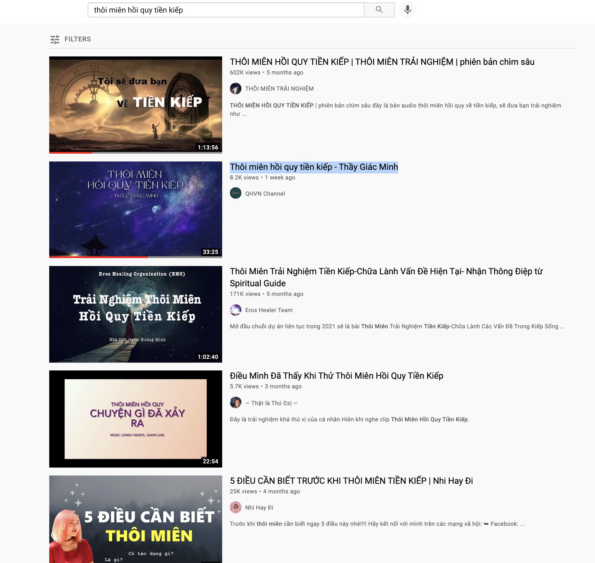 Để thực hiện việc thôi miên thì đơn giản là bạn lên youtube search với từ khoá: “Thôi miên hồi quy tiền kiếp” là có hàng trăm bài dẫn thiền xuất hiện trong kết quả tìm kiếm. Bạn chỉ cần có không gian yên tĩnh và có thời gian là có thể tự thực hiện thôi miên hồi quy tiền kiếp tại nhà mình. Như vậy về cơ bản thì thôi miên hồi quy tiền kiếp không thực sự nguy hiểm nhưng nếu bạn vẫn còn nghi ngờ thì hãy thử các cách dưới bài viết.